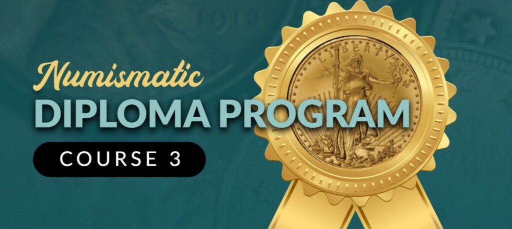 The Numismatic Diploma Program provides individuals the opportunity to obtain a “Numismatic Scholar” certificate by completing a series of online courses. As each course is currently being updated, the first course and second courses are now available, with more courses coming about 6-8 months apart.
