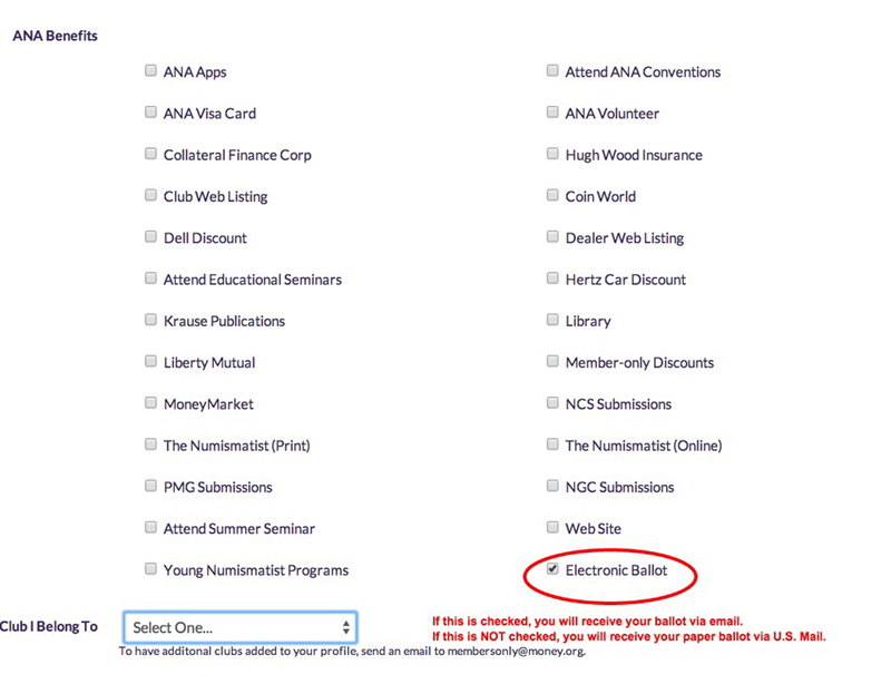 Scroll down to the “ANA Benefits” area of the screen and check the box labeled “Electronic Ballot” in order to vote electronically.