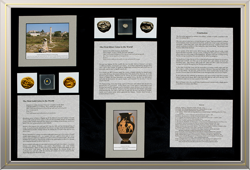 The first coins appeared in western Asia Minor, in what is now western Turkey, in the second half of the 7th Century BCE. This dating is based upon analysis of the Artemision Deposit, a dedicatory offering of precious objects that was unearthed in 1904-5 from beneath the foundation of the Temple of Artemis at Ephesus. The Temple of Artemis was famous as one of the Seven Wonders of the World.