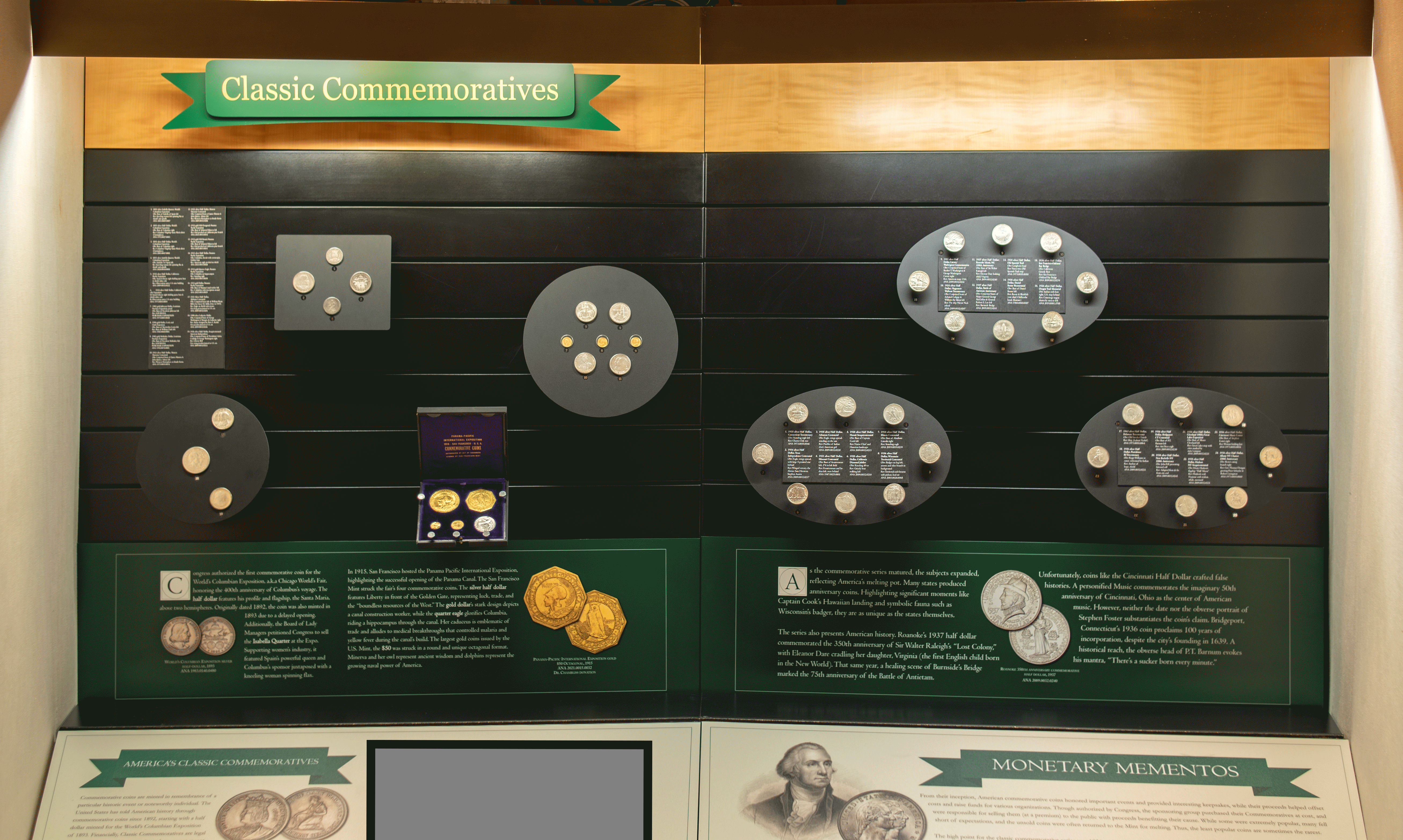 Generations of numismatists, fueled by the excitement of the hunt, have sought and collected commemorative coins for their rarity, their local affiliations, and their historical value. Choose a case below to begin exploring the exhibit.
