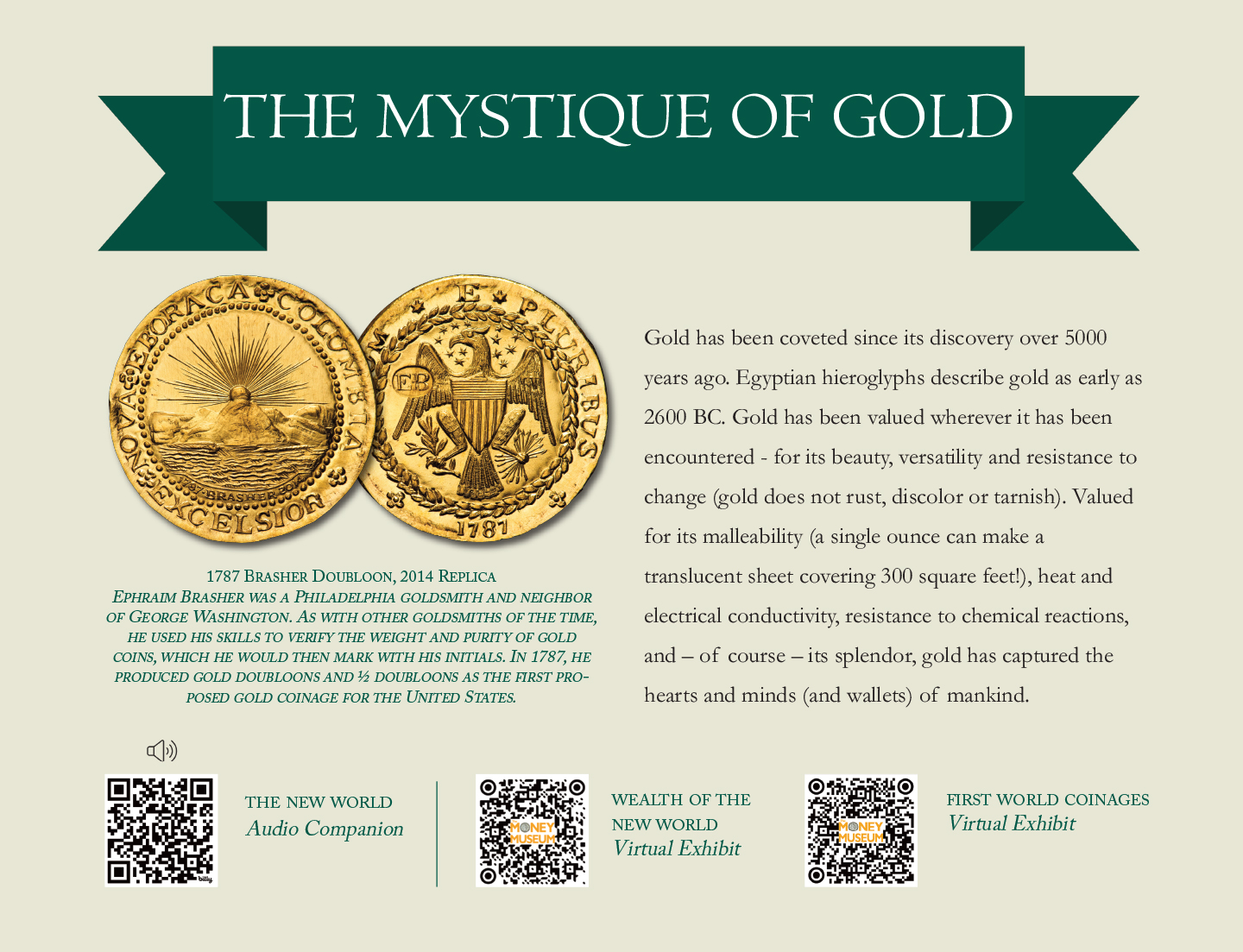 Gold has been coveted since its discovery over 5000 years ago. Egyptian hieroglyphs describe gold as early as 2600 BC. Gold has been valued wherever it has been encountered – for its beauty, versatility and resistance to change (gold does not rust, discolor or tarnish). Valued for its malleability (a single ounce can make a translucent sheet covering 300 square feet!), heat and electrical conductivity, resistance to chemical reactions, and – of course – its splendor, gold has captured the hearts and minds (and wallets) of mankind.