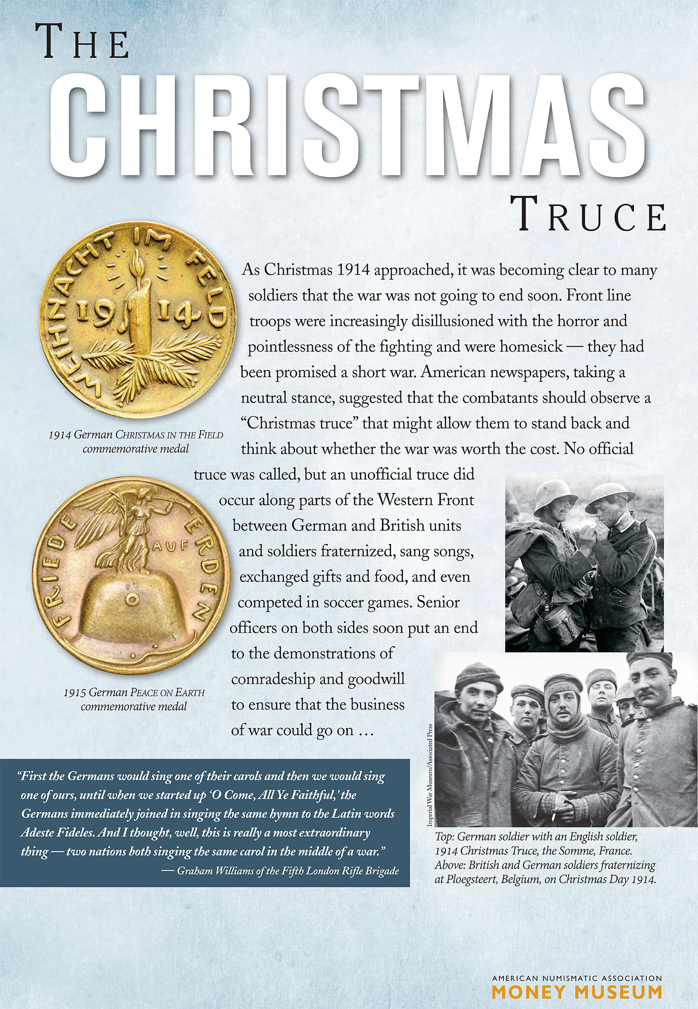 American newspapers, taking a neutral stance, suggested that the combatants should observe a “Christmas truce” that might allow them to stand back and think about whether the war was worth the cost. No official truce was called, but an unofficial truce did occur along parts of the Western Front between German and British units and soldiers fraternized, sang songs, exchanged gifts and food, and even competed in soccer games. Senior officers on both sides soon put an end to the demonstrations of comradeship and goodwill to ensure that the business of war could go on …