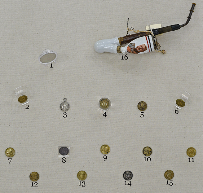 Bavarian medalist Karl Goetz issued a series of annual medals from 1914 to 1918 commemorating the sacrifice of soldiers and celebrating Christmas. On each medal, a German military and political leader appears on the obverse, while the reverses depict one, two, three, four or five candles, symbolizing the year of the war. The first four medals have a legend translating to “Christmas on the field,” while the 1918 medal’s legend translates to “Christmas at home.” Each medal is 22.5 mm in diameter.