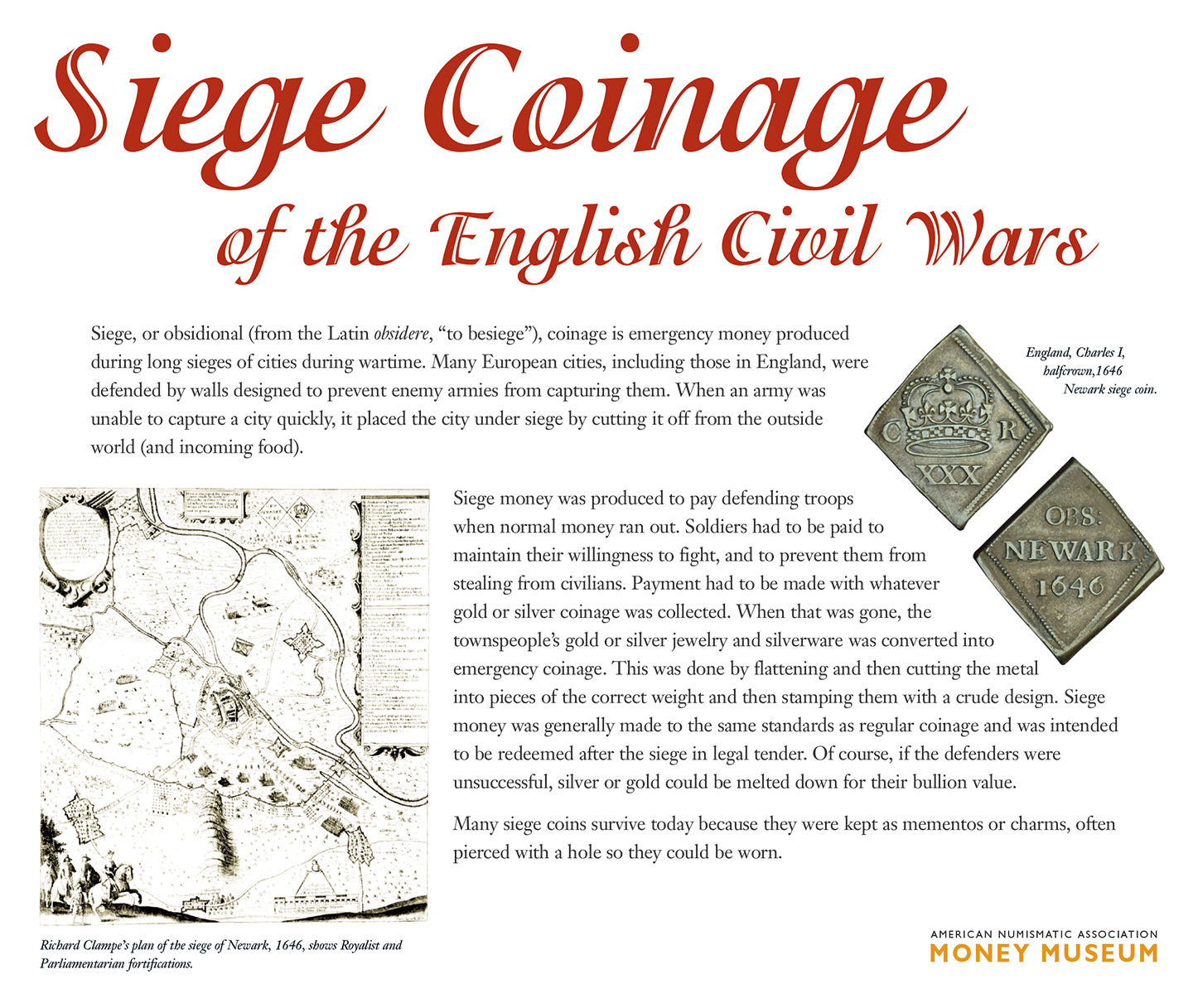 Many siege coins survive today because they were kept as mementos or charms, often pierced with a hole so they could be worn.