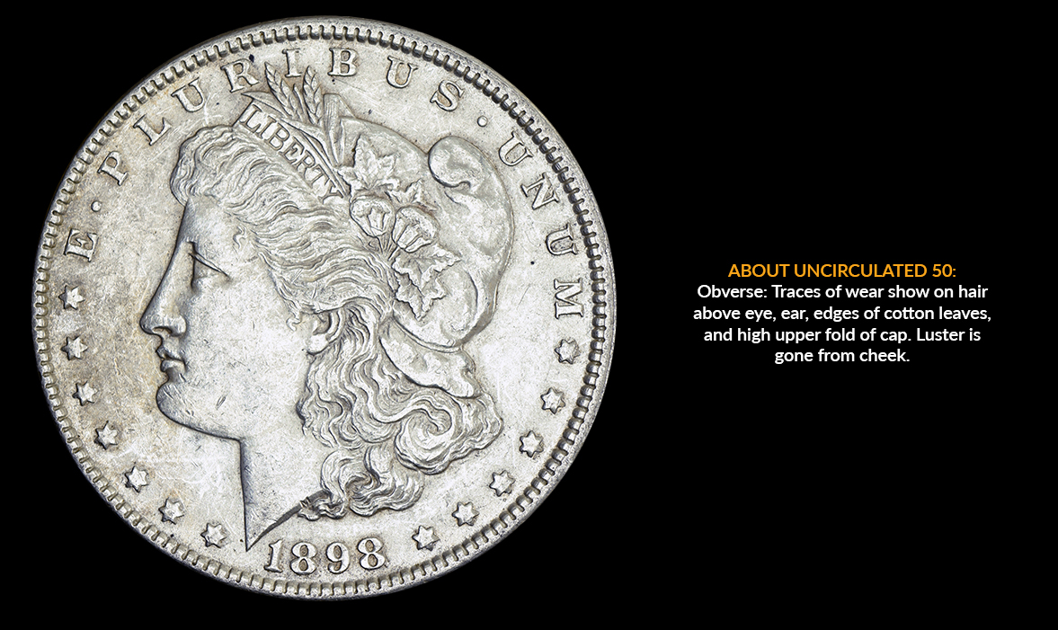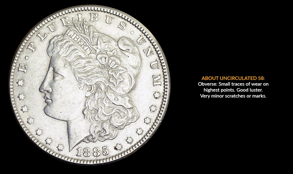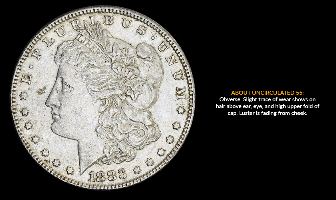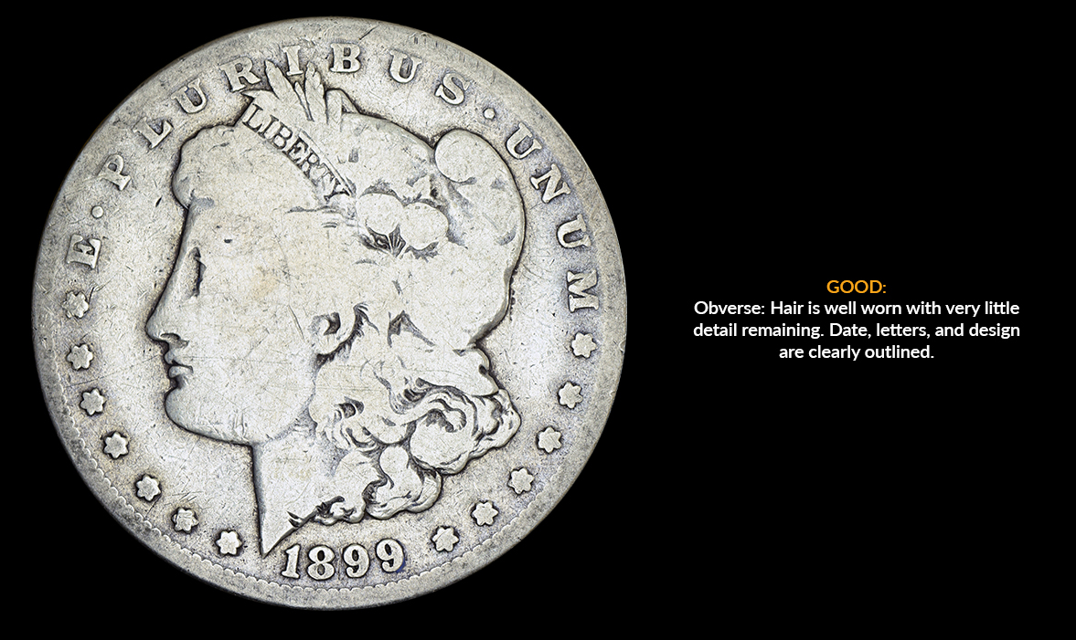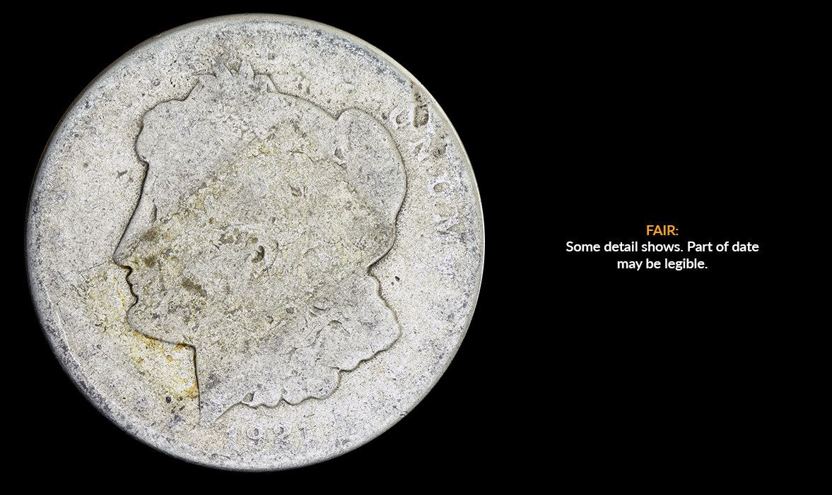 The following definitions and images are representative of the American Numismatic Association (ANA) Grading Standards. While it is always best to view a coin first-hand, hopefully the following images will provide a useful guide to grading the popular Morgan Series. The ANA offers classes periodically in all phases of grading and counterfeit detection. Find more information on upcoming numismatic seminars and educational opportunities here.