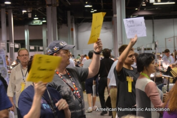 The World’s Fair of Money got off to a big start on Tuesday with high demand for the 2014 dual-dated Kennedy gold coin from the U.S. Mint. But there was plenty else happening at the show as well — scroll down to check out images from the first day of the biggest show of the summer.
