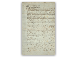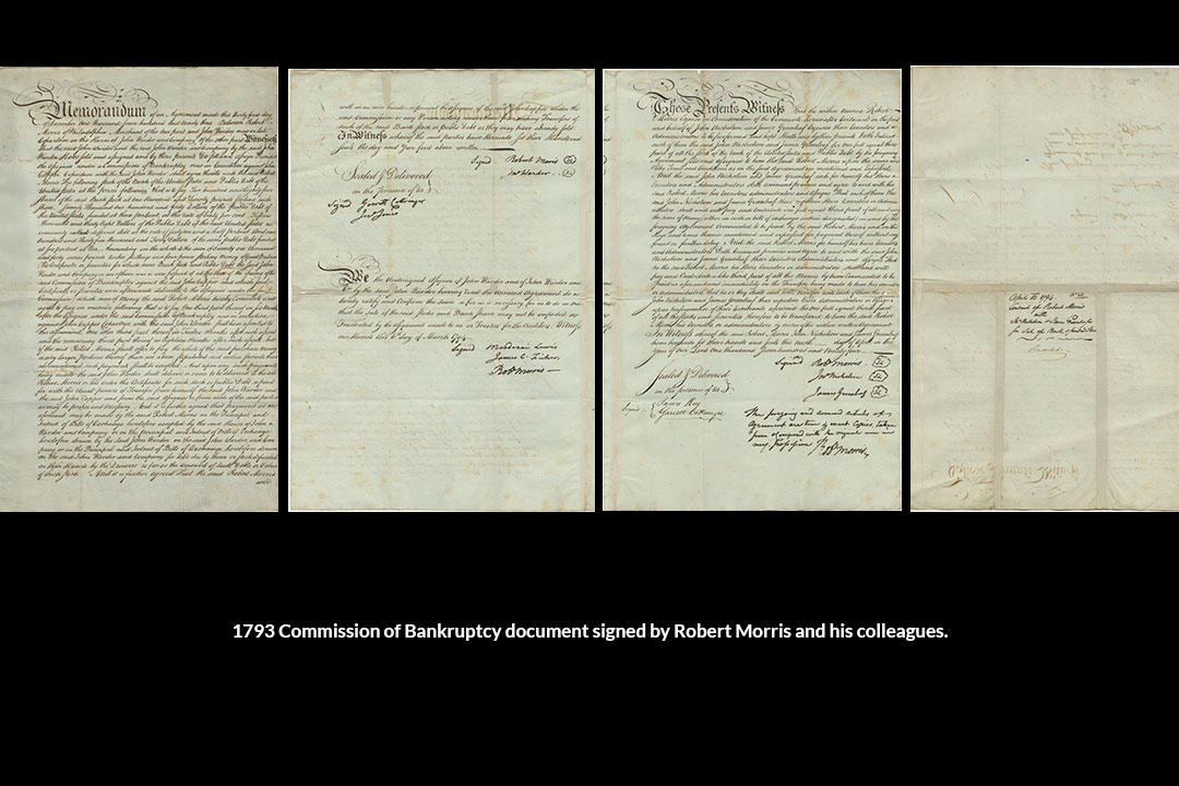 The Money Museum’s four-page Commission of Bankruptcy details an agreement drafted on December 31, 1793, and finalized by Robert Morris and others in March and April 1794. A Commission of Bankruptcy was common at the time—it empowered certain people to examine the cause of a bankruptcy and secured the insolvent entity’s possessions for its creditors. In this case, the “bankrupt” was John Warder & Co., a business failure Morris later said was the beginning of his own bankruptcy. The document establishes Morris, John Nicholson and Thomas Greenleaf as creditors; the three later formed the North American Land Company, investing in ill-advised land speculation that contributed to the Panic of 1796-97.