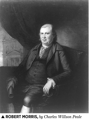 Robert Morris (1734-1806) was born in Liverpool, England, and immigrated to Maryland at age 13 to live with his father, a tobacco salesman. He was sent to Philadelphia to study and apprenticed with a prominent merchant in banking and shipping. At 24, Morris partnered with Thomas Willing to form Willing, Morris & Co., which was involved in the banking, shipping and slave trade industries—a position he held for more than 20 years. The enterprise was profitable, and he became one of the richest men in the colonies.
