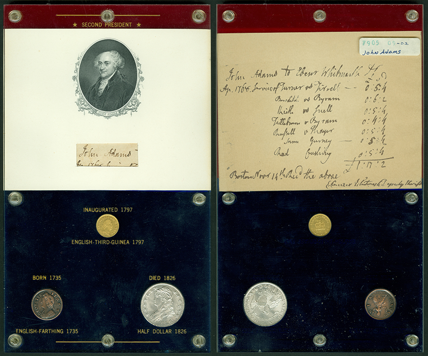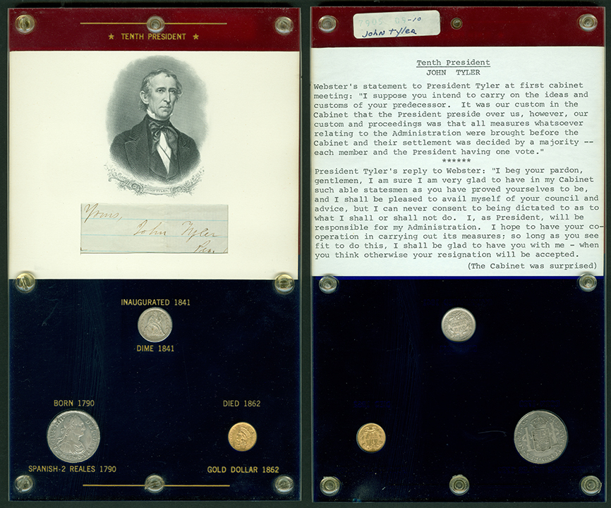 This exhibit has no equal in the Museum for vividly relating events to American chronology. It is fun for young people to see just how the presidents wrote their names and what kinds of coins they might have used when they were growing up. They can learn what coins were in public hands at the time the presidents took office and what was being minted as their careers ended. Many of the Markoff coins are among the most attractive examples in the Museum collection, and Mr. Markoff must have selected them for their variety and interest, as well as their choice state of preservation.