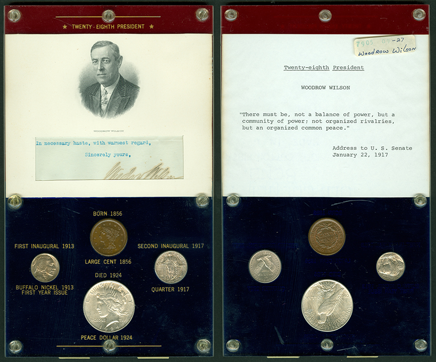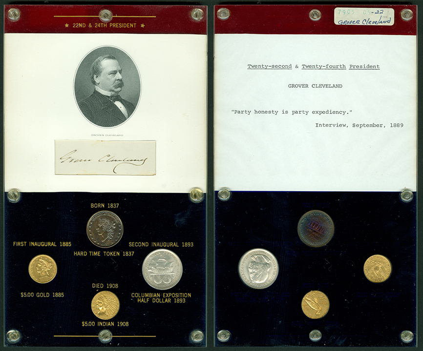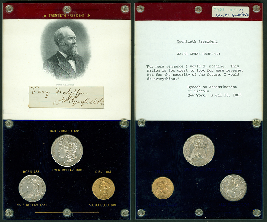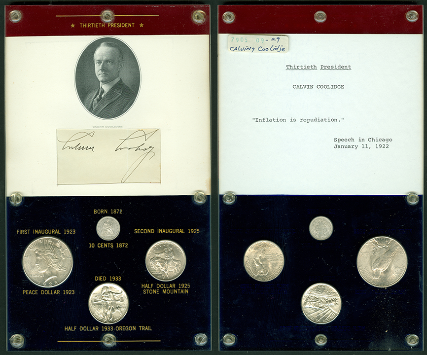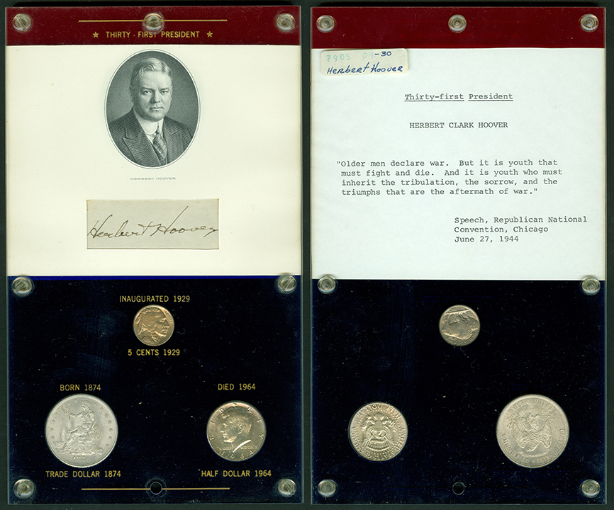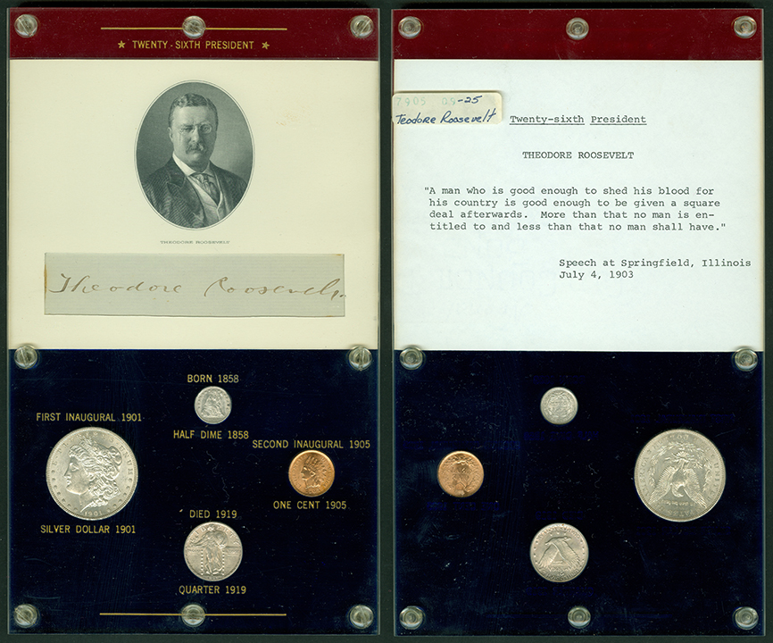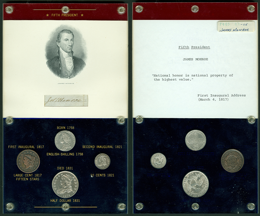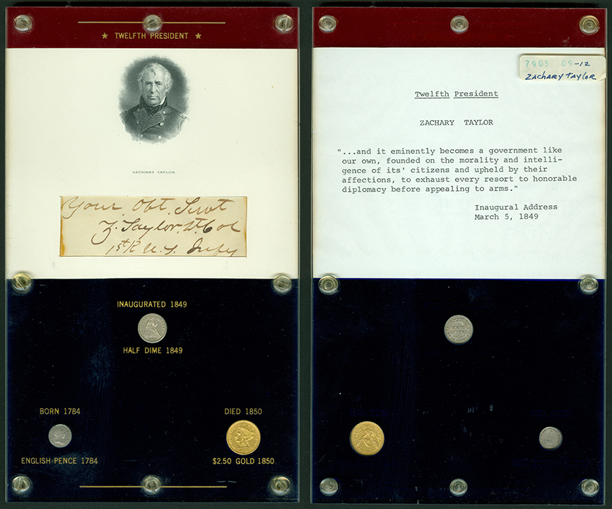 Elliott Markoff was a prominent California collector who immigrated to the United States from Poland when he was 21. He assembled his presidential collection over a 15-year period, and won awards displaying it competitively at coin conventions. At the time of its donation, only Richard Nixon, Gerald Ford and Jimmy Carter’s holders were not complete. Unfortunately, Markoff died in 1982, just as he was putting together material honoring Ronald Reagan.