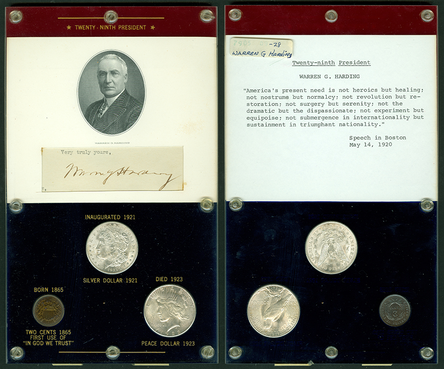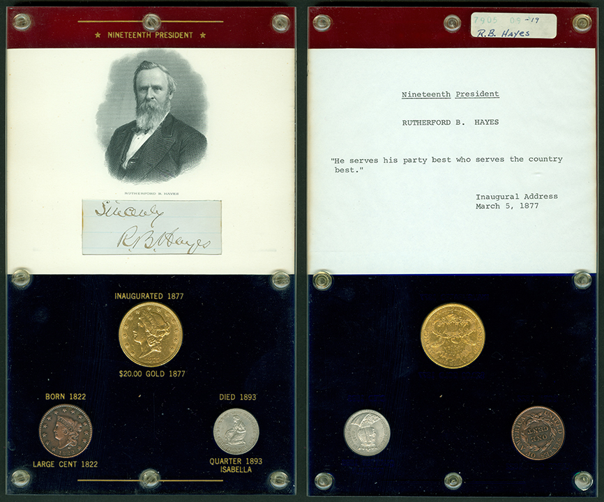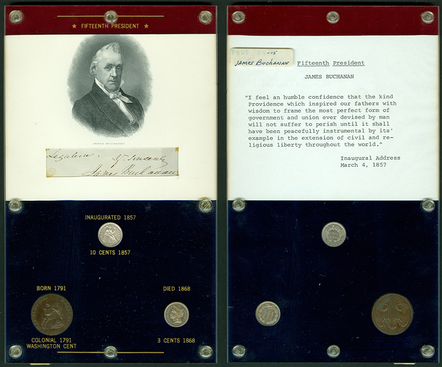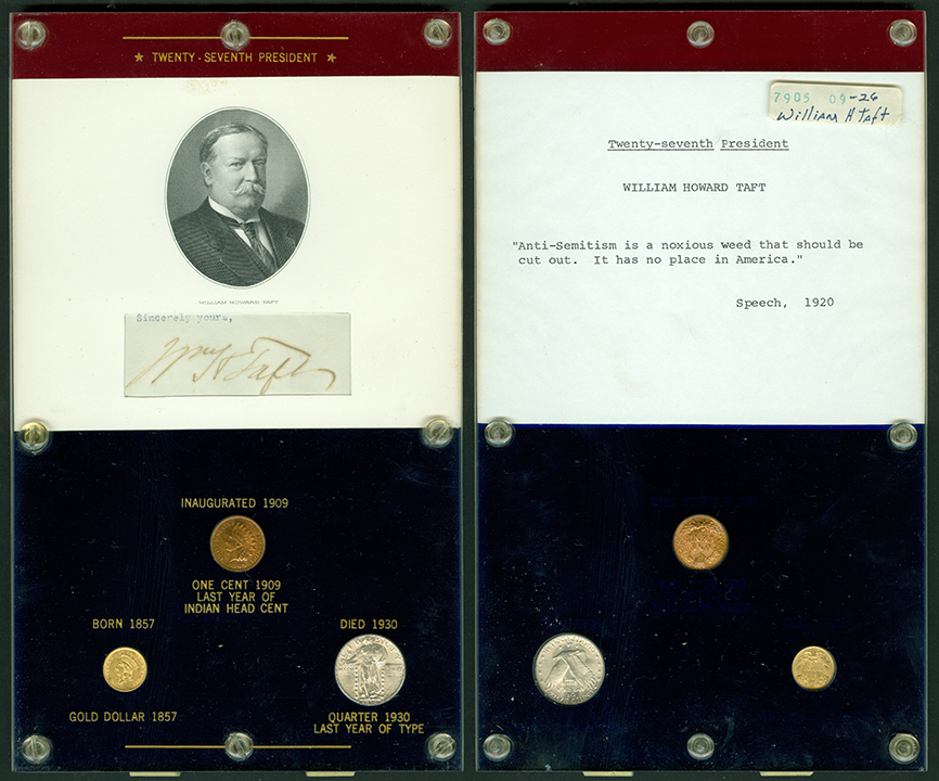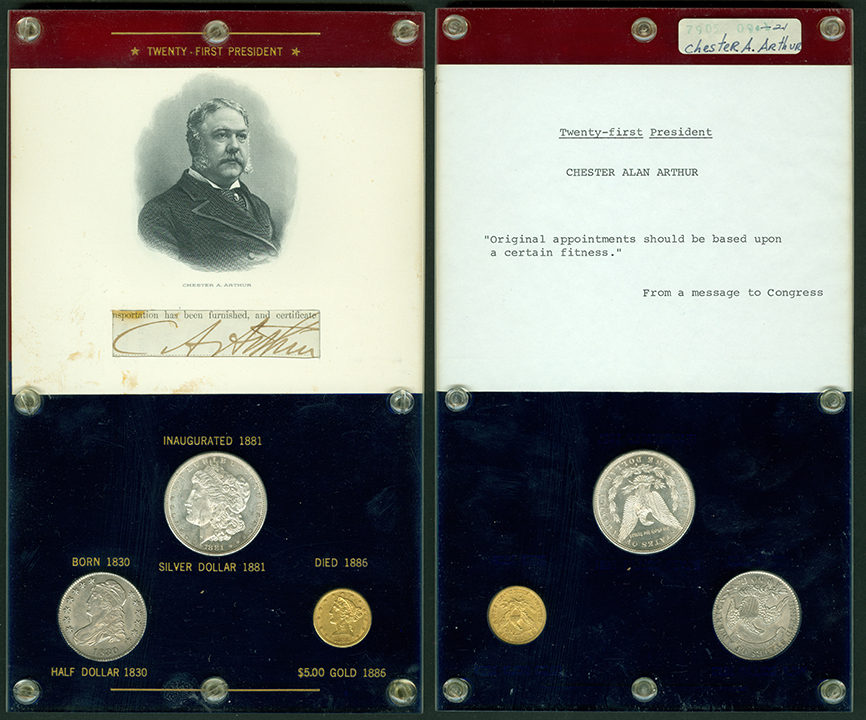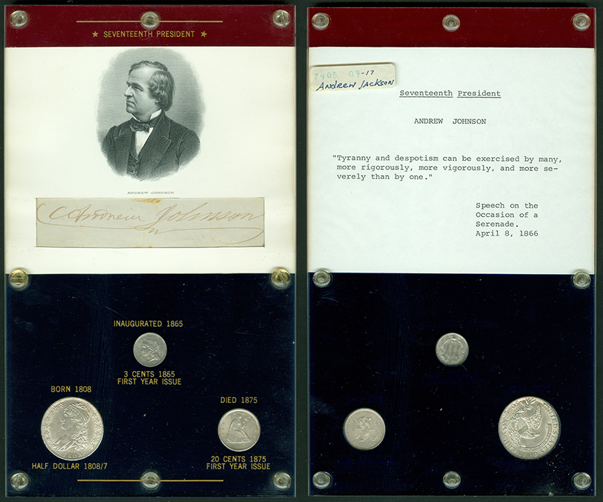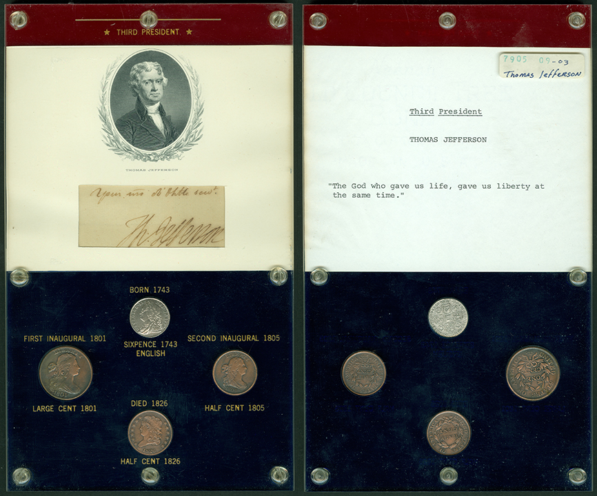 Elliott Markoff was a prominent California collector who immigrated to the United States from Poland when he was 21. He assembled his presidential collection over a 15-year period, and won awards displaying it competitively at coin conventions. At the time of its donation, only Richard Nixon, Gerald Ford and Jimmy Carter’s holders were not complete. Unfortunately, Markoff died in 1982, just as he was putting together material honoring Ronald Reagan.