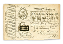In 1797 William Pitt the Younger (1759-1806), the prime minister (1783-1801 and 1804-06) who led Britain through the early part of the Napoleonic Wars, pushed a decree through Parliament known as the “Bank Restriction Act.” This legislation removed the requirement that Bank of England notes be exchangeable for gold or silver. The “restriction” ironically resulted in a huge expansion of paper money production as the government, businesses and individuals hoarded silver and gold. In conjunction with this new law, £1 and £2 notes were issued for the first time to make up for the coin shortage.