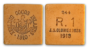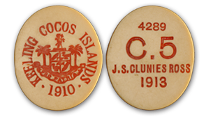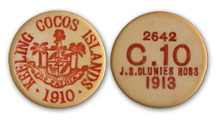 The ANA Money Museum is fortunate to possess a complete set of rare tokens of the Cocos Islands. Produced in 1913, these tokens highlight the complex history of the islands and illustrate the economic control the issuing authority intended to create with their use.