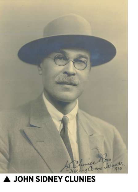 Between 1831 and 1857, the Cocos Islands were a private fiefdom ruled by the Clunies-Ross family. The family had complete control with no written laws or political parties, but maintained close ties with England. The islands were populated by about 30 Europeans and 170 people from the East Indies and the Cape of Good Hope. All non-Europeans worked at the plantation and were paid with “Cocos Rupees” that could only be redeemed at the Clunies-Ross family store. In 1854 John Clunies-Ross died and control was passed to his son John George (1823-1871, Ross II).